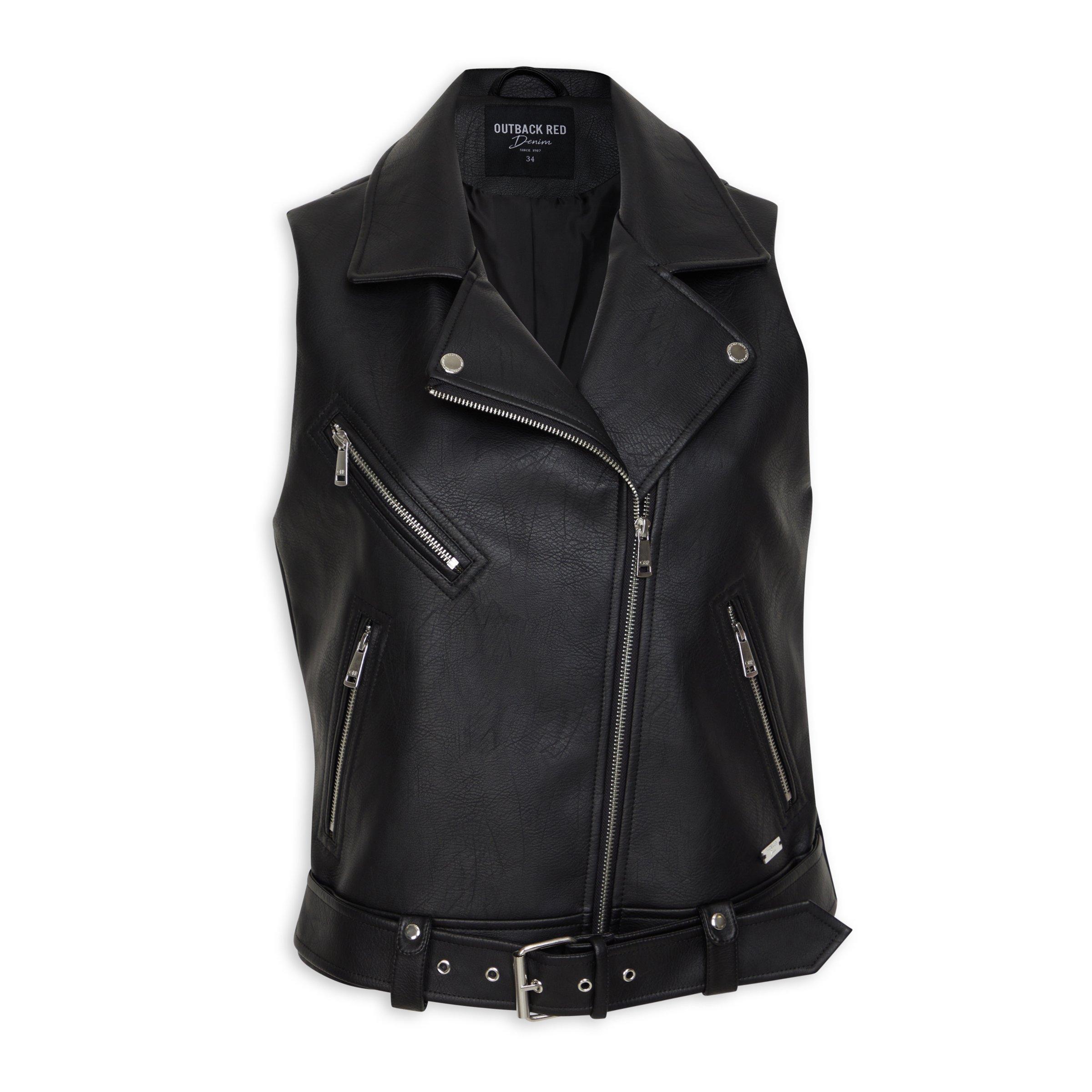 Black sleeveless cheap biker jacket