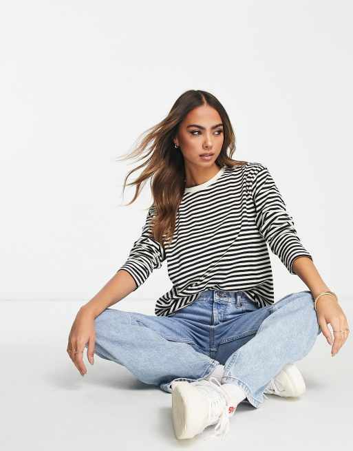 Black and white cheap striped shirt 3/4 sleeve