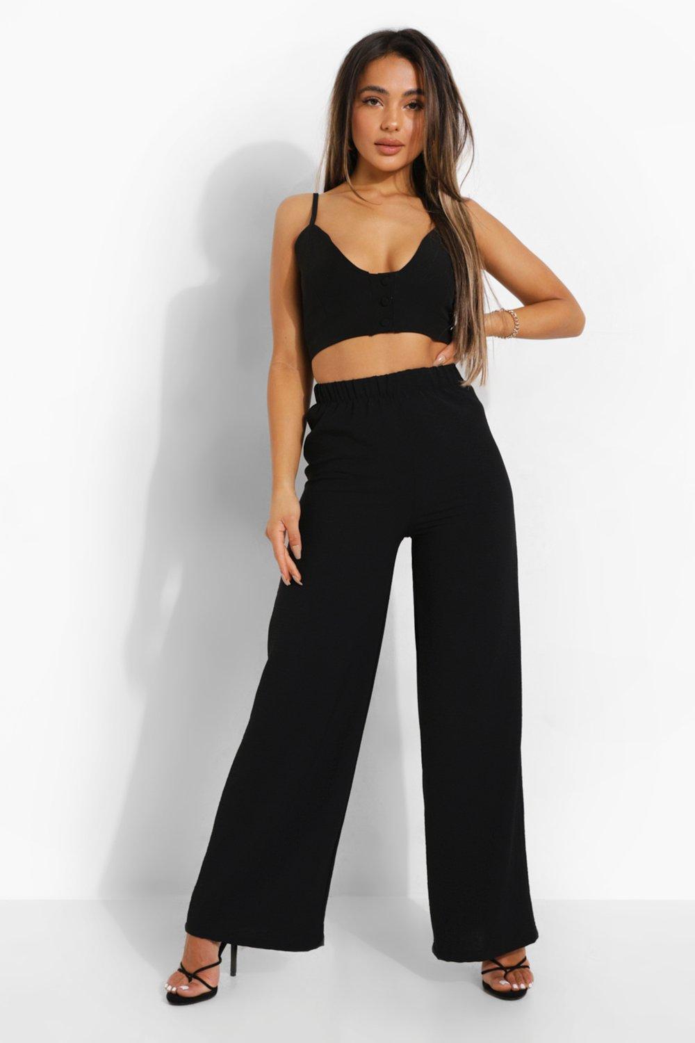 Product Item: Wide leg cheap black trousers petite