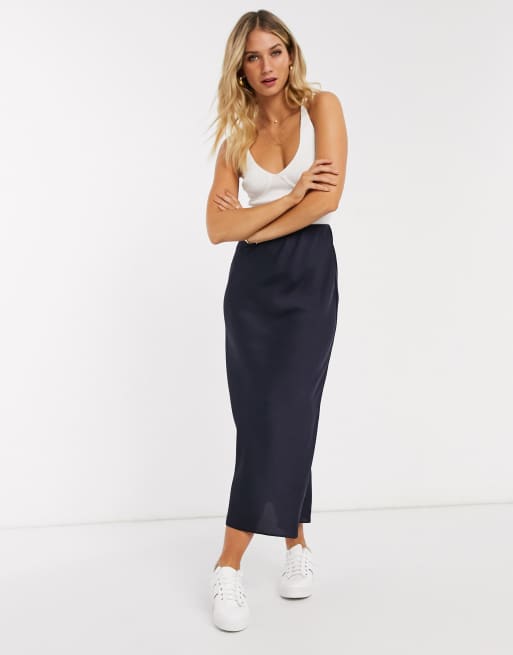Asos navy cheap midi skirt